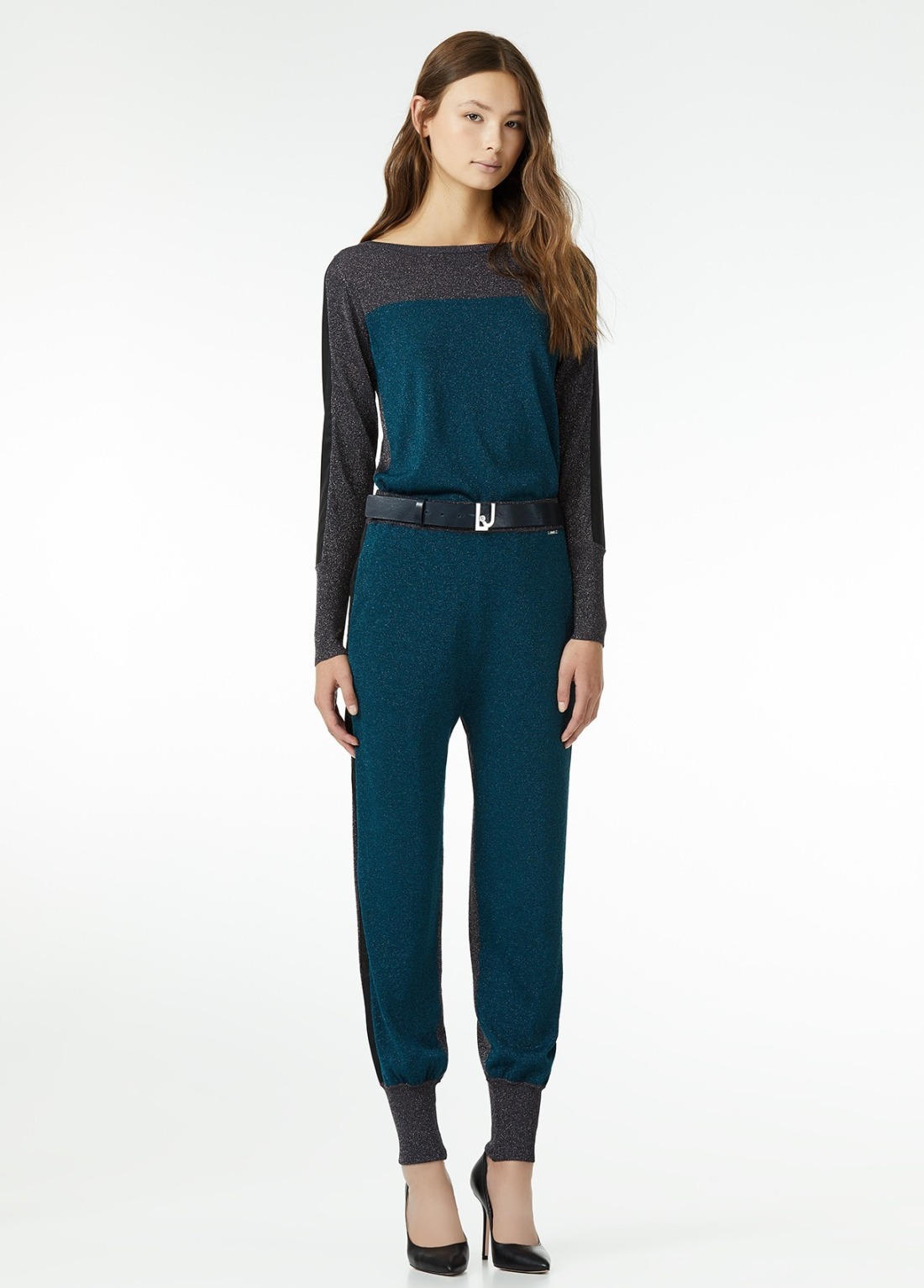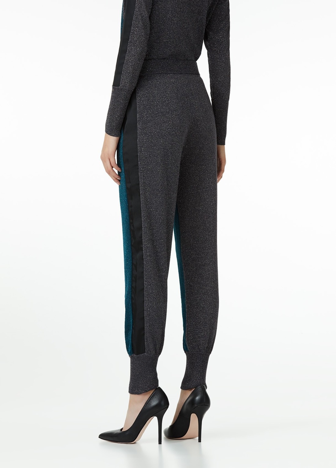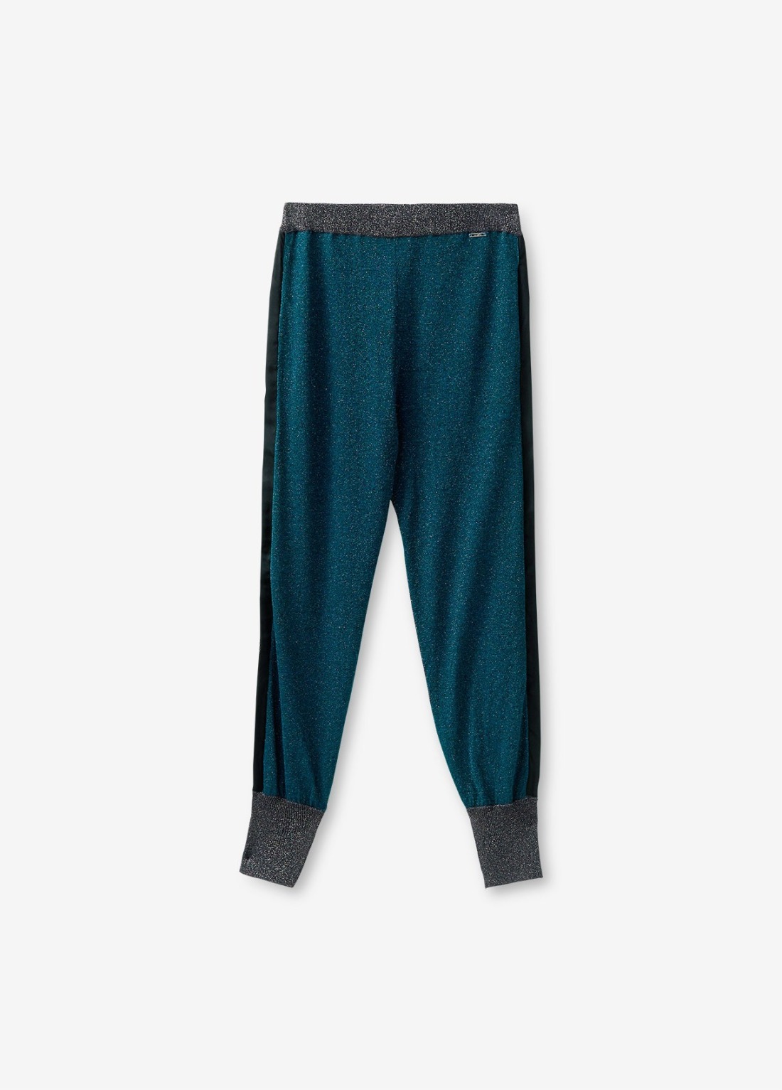 Pantalón de punto con inserciones de lúrex y pretina elástica.
