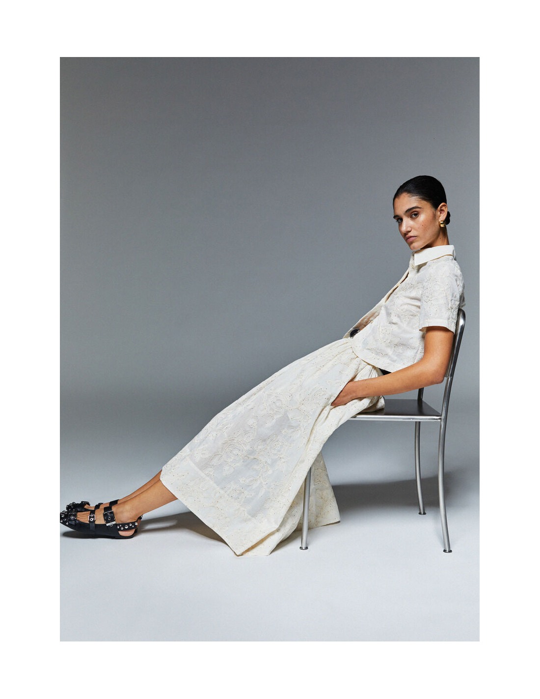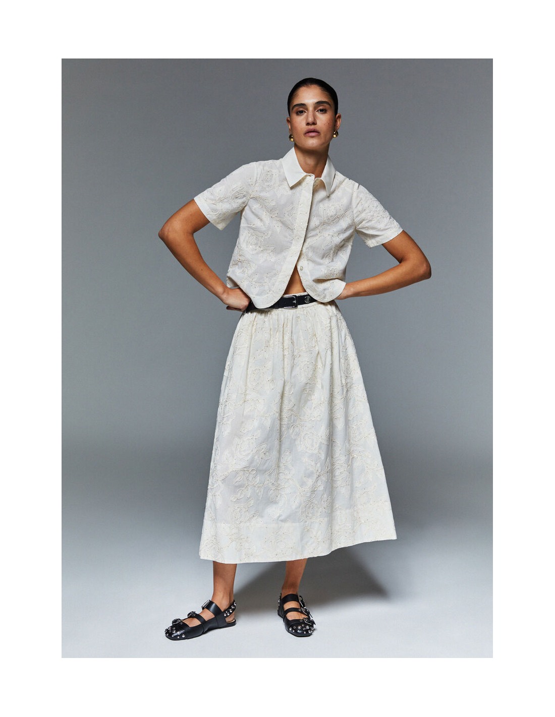 La falda que hace especial lo cotidiano. Hecha de muselina de algodón, fresca y transpirable, tiene una silueta midi amplia y una cintura elástica para un ajuste cómodo. El bordado tono sobre tono completa el diseño con un toque refinado. Perfecta para la vida en la ciudad, vacaciones y escapadas de fin de semana, combínala con zapatillas durante el día y sandalias por la noche.