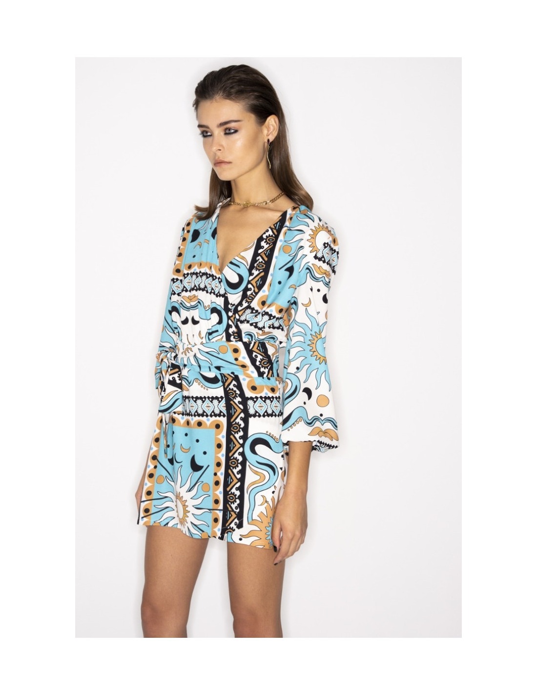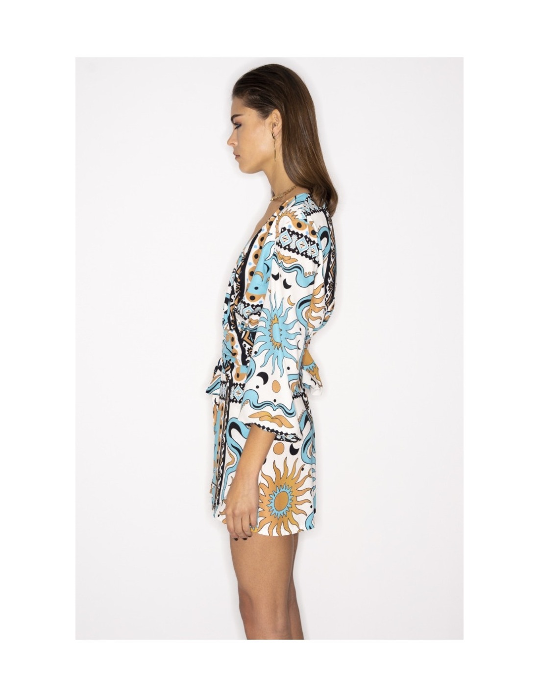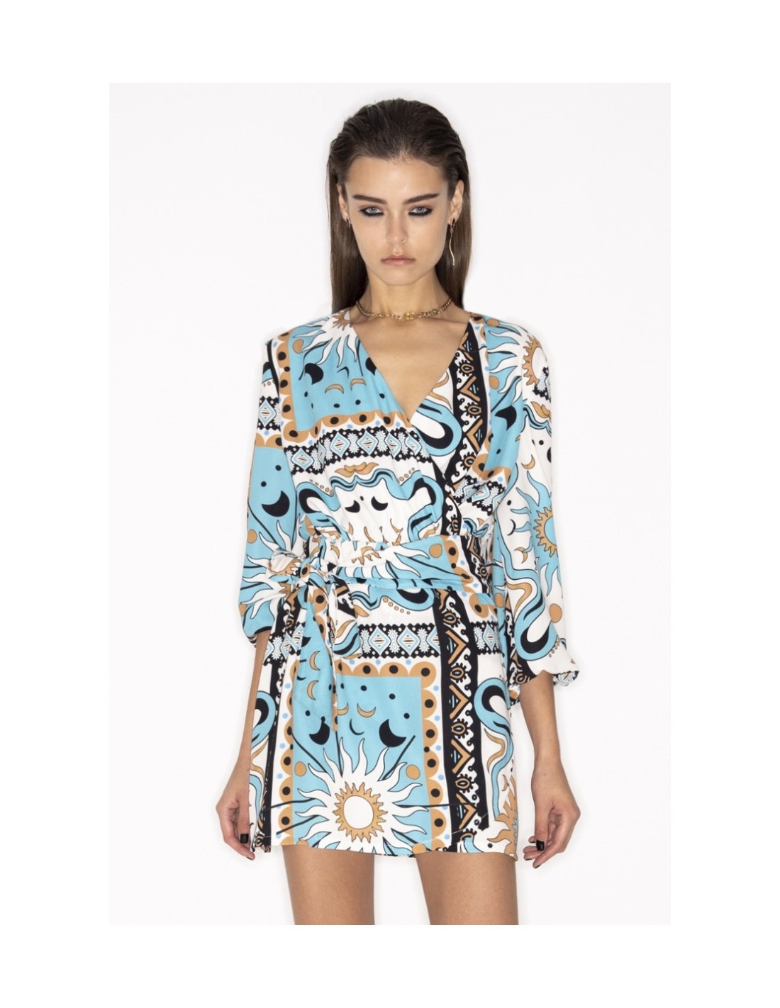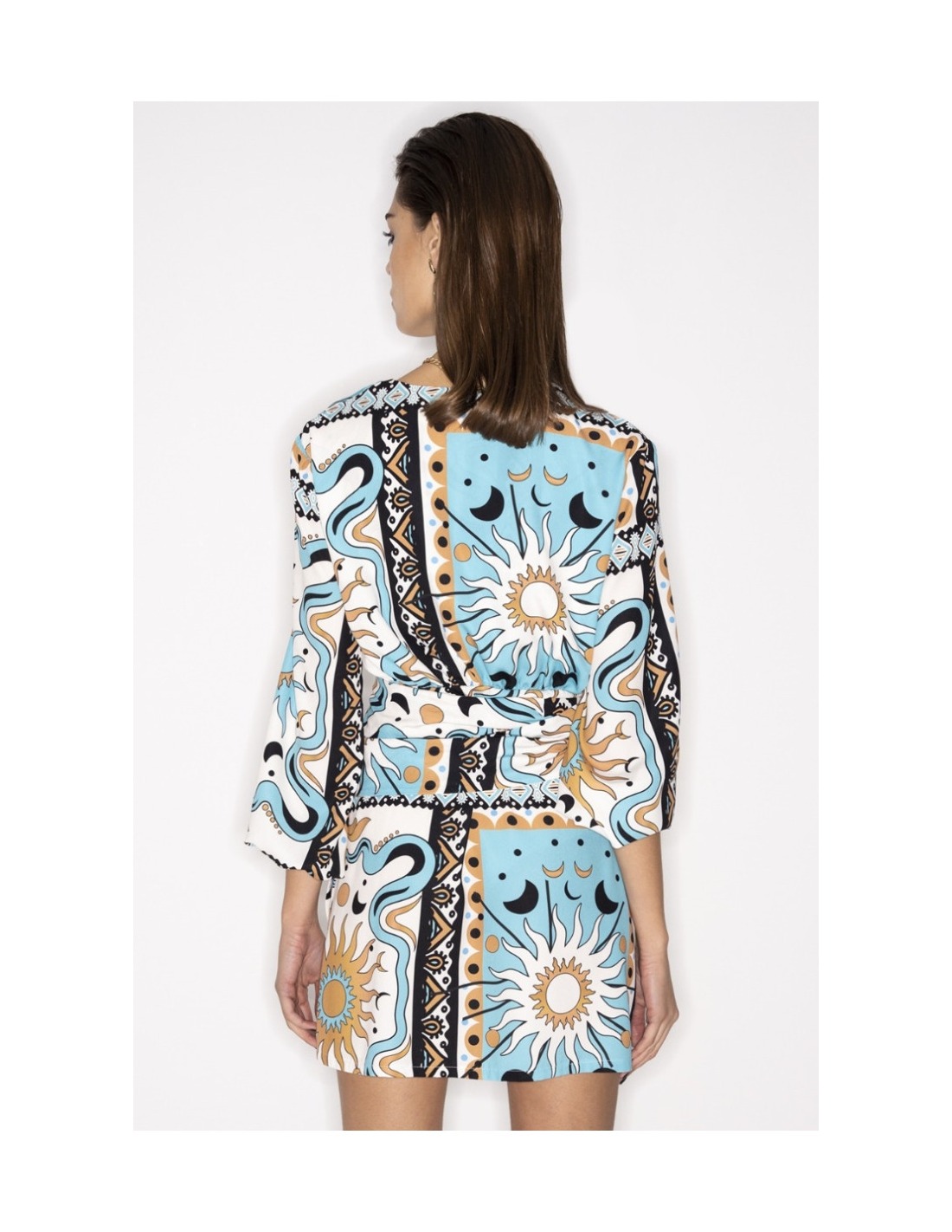 Astral Plane Short Dress. Our authentic P+C print gives the dress depth, while the leg-bearing length represents the sizzling sunshine.