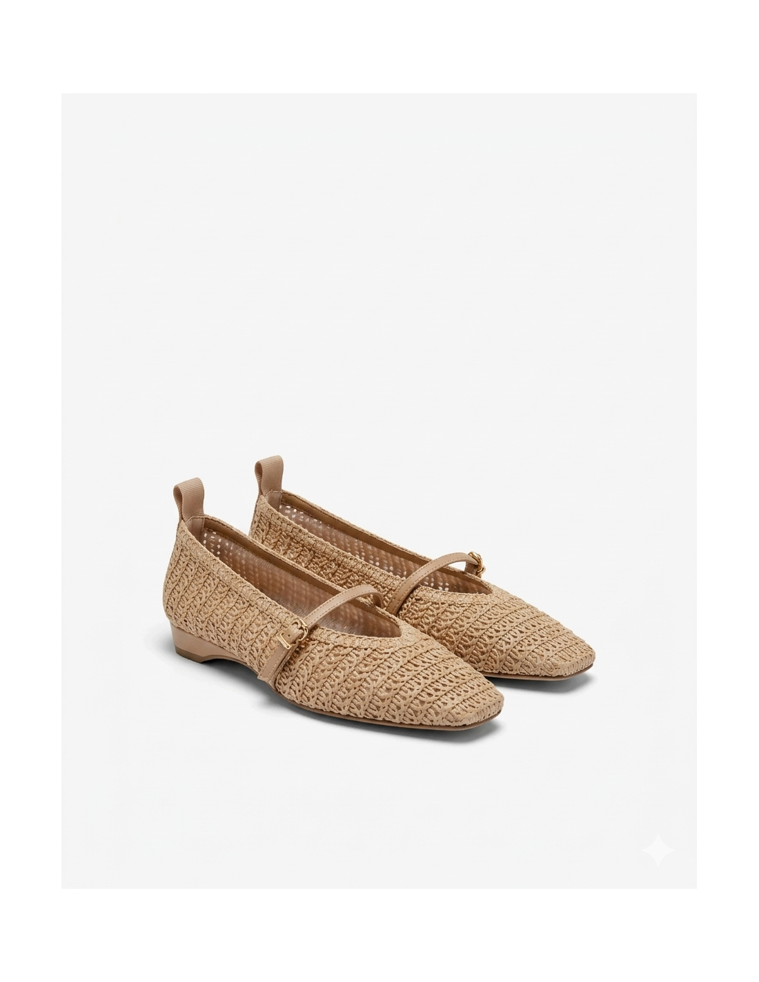 Bailarinas de rafia. Un diseño sofisticado y romántico que combina la estética veraniega de la rafia con la elegancia de los detalles de piel. La opción perfecta para lucir a diario esta temporada.