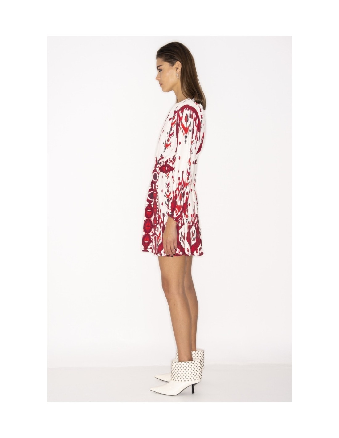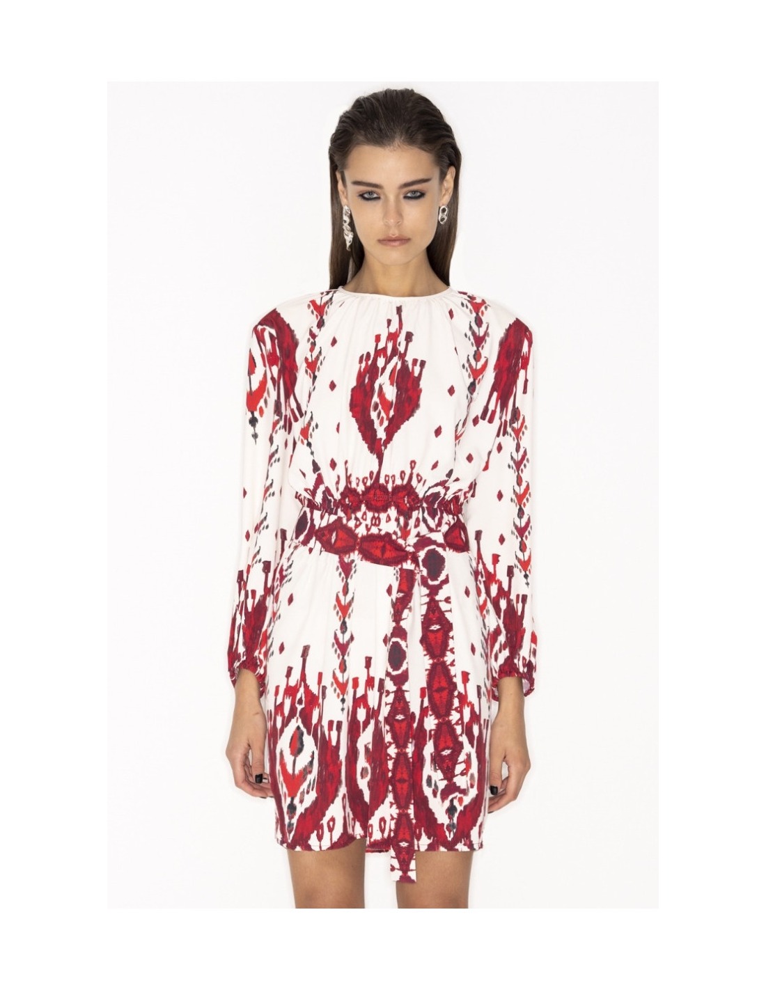 Get the look with our Dian Short Dress. In an irresistible ethnic-sharp print, the dress has bold motifs yet subtle warmth from earthly hues. Chic and feminine, this relaxed piece will flatter any shape. Simply a wardrobe must-have.