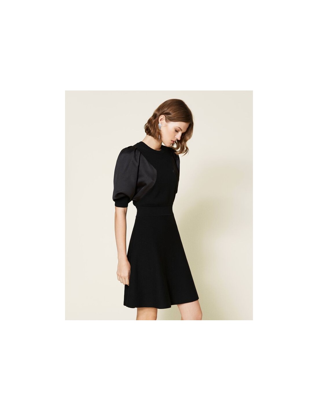 Vestido de punto y raso con logotipo 3151