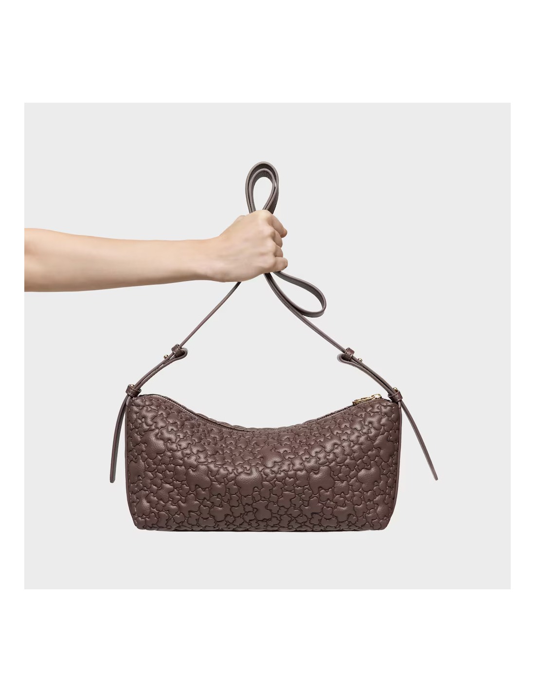 Bolso bandolera mediana TOUS Puffy Bear en color marrón. Cierre de cremallera. Bolsillo interior con cremallera. Asa bandolera ajustable. Medidas (alto x ancho x fondo): 15 x 35 x 10 cm.
