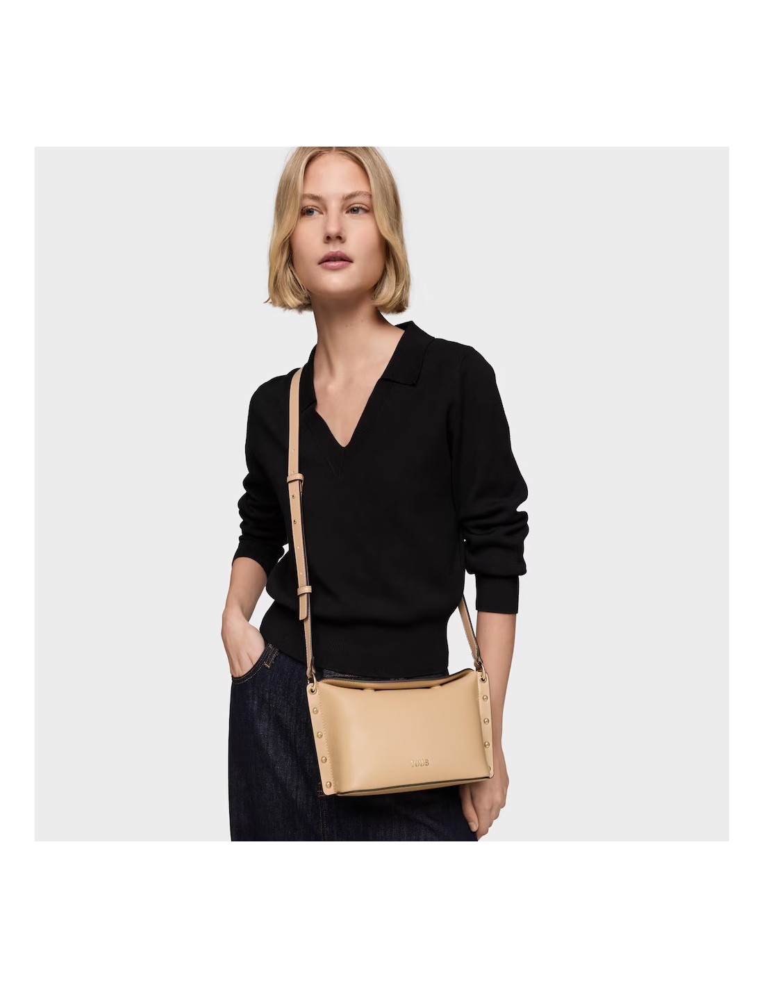 Bolso bandolera pequeño TOUS Jewelry Studs de poliuretano. Cierre magnético. Asa bandolera ajustable. Bolsillo interior con cremallera. Medidas (alto x ancho x fondo): 16 x 27 x 10 cm.