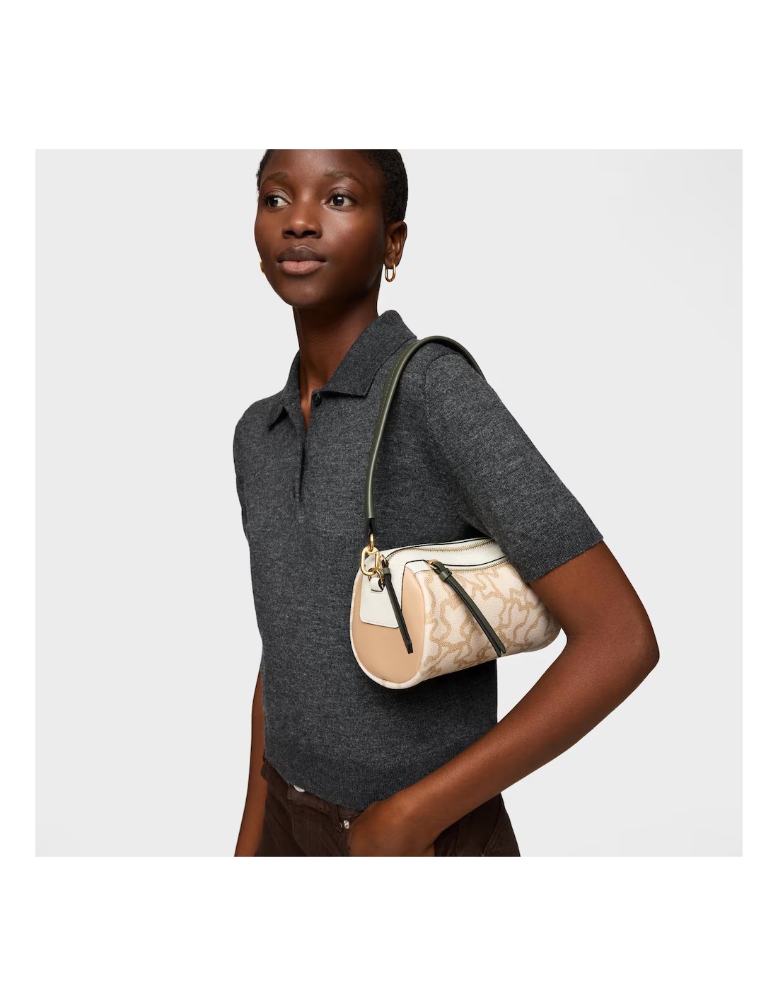Bowling pequeño TOUS Kaos Icon de poliuretano. Cierre de cremallera. Asa de hombro ajustable ya asa bandolera extraíble. Medidas (alto x ancho x fondo): 10 x 20 x 10,5 cm.