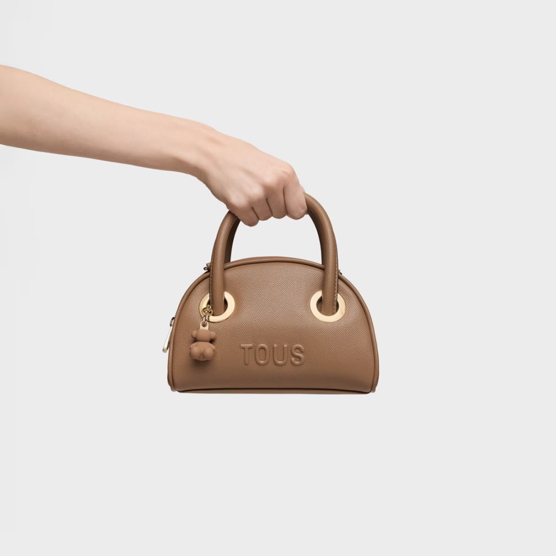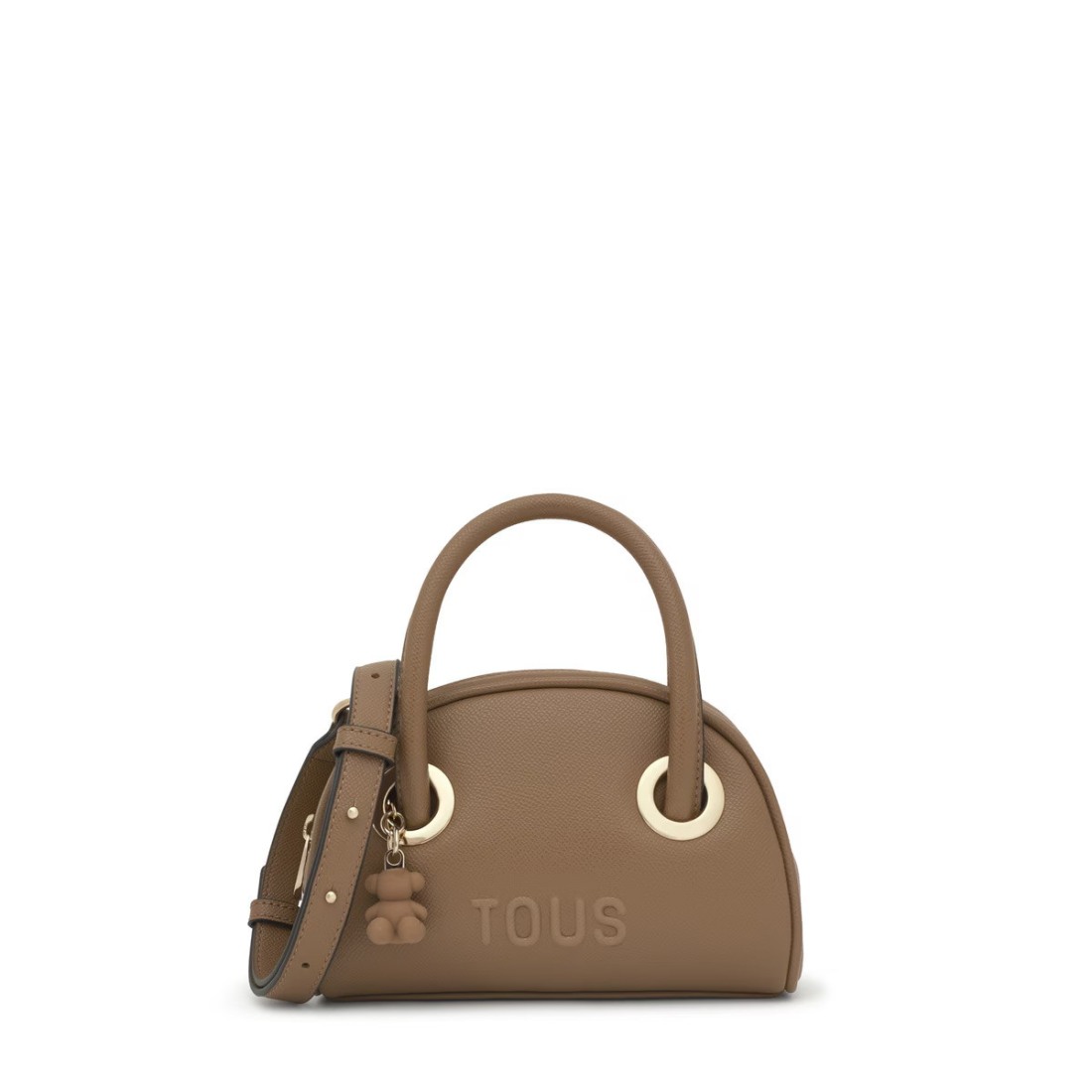 Bolso bowling pequeño TOUS Poppy de poliuretano en. Cierre de cremallera. Asas fijas de mano y asa bandolera ajustable y desmontable. Medidas (alto x ancho x fondo): 13,2 x 20 x 8 cm.