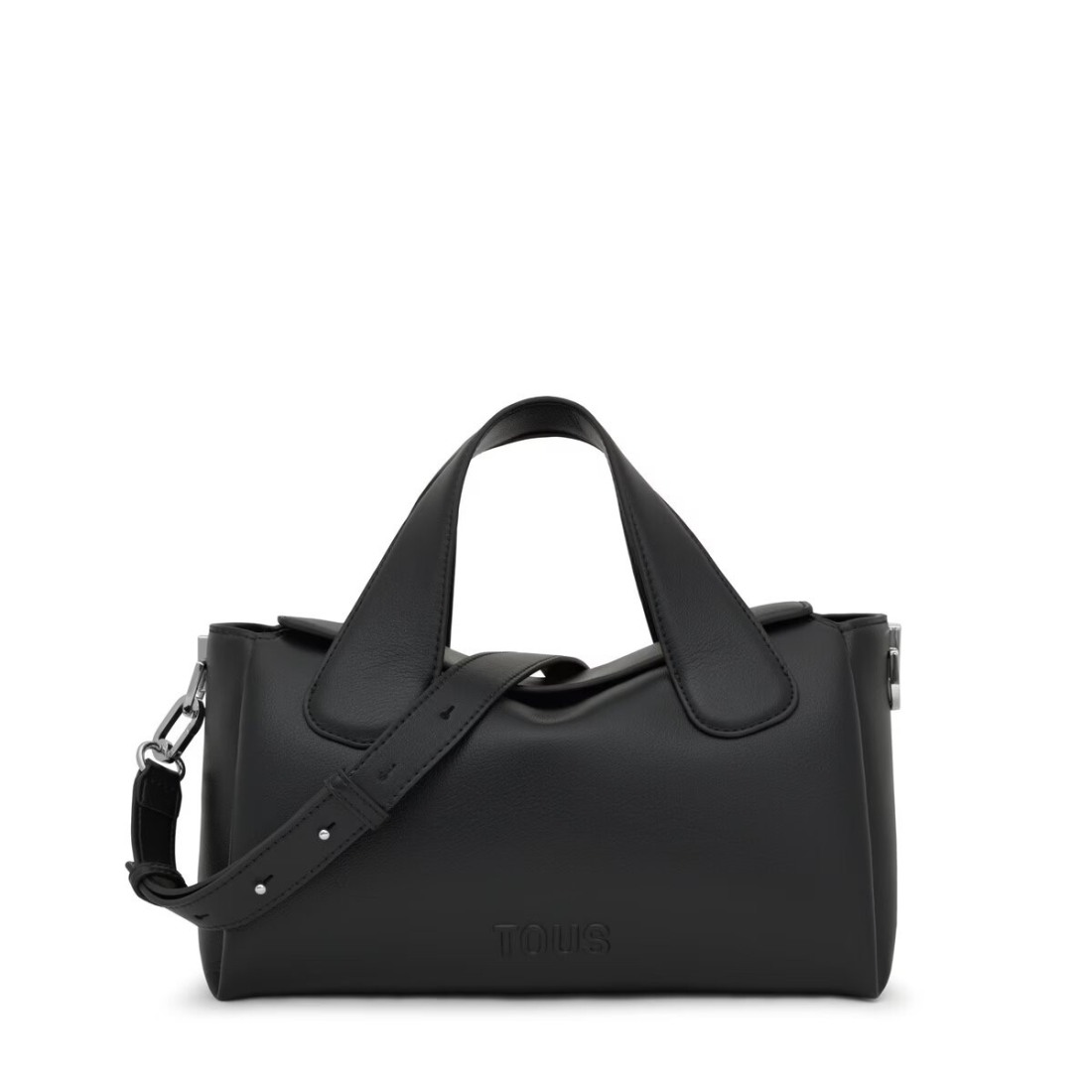 Bolso City mediano TOUS Bloom de poliuretano en color negro. Cierre magnético. Asas fijas de mano y asa bandolera ajustable y desmontable. Bolsillo interior abierto. Medidas (alto x ancho x fondo): 17 x 33 x 15 cm.