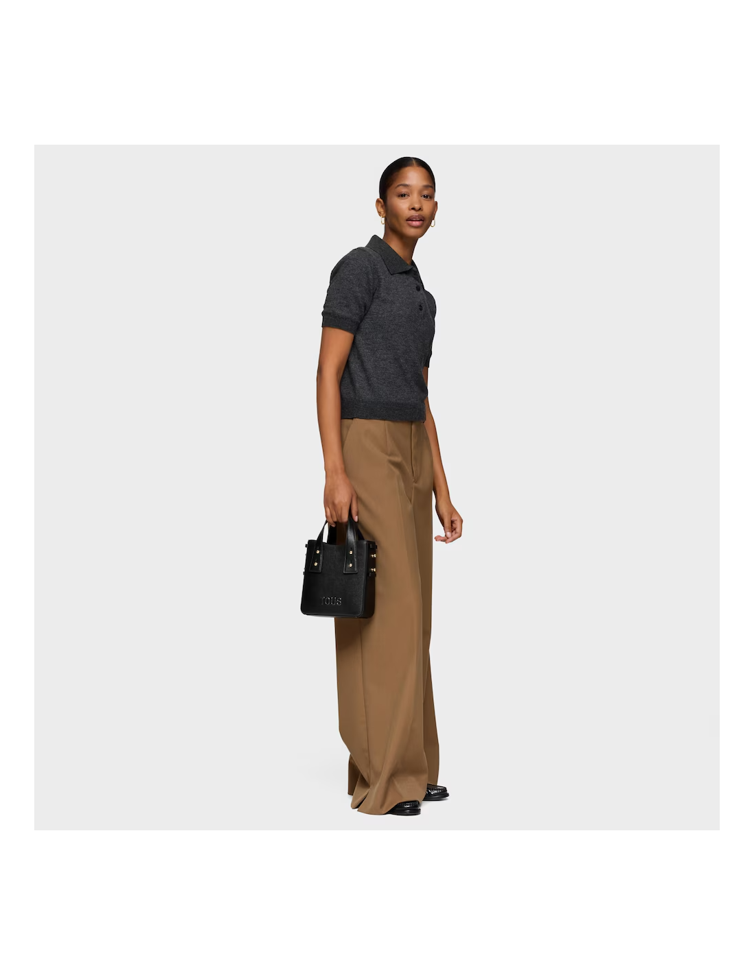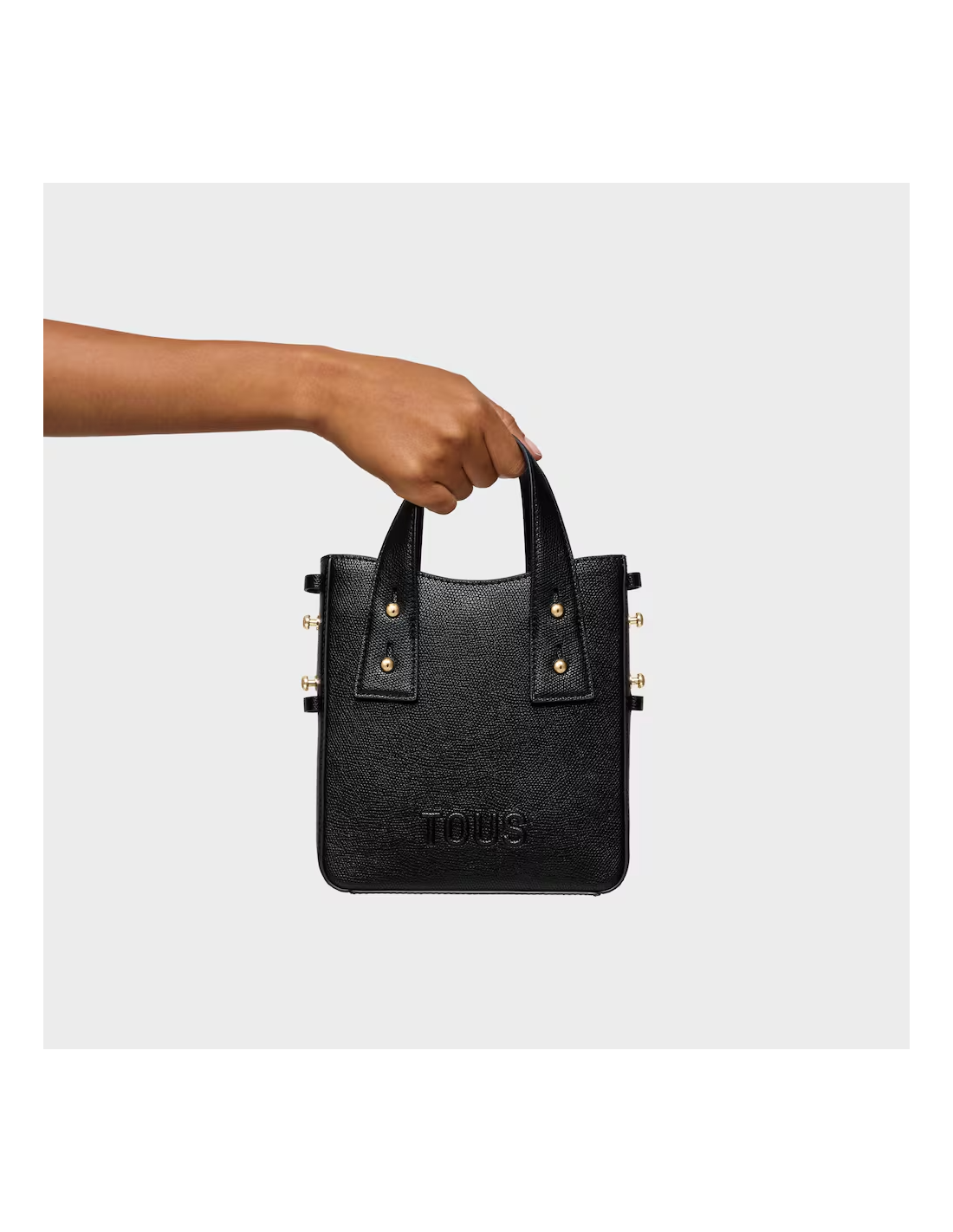 Minibolso TOUS Back to basics de poliuretano. Cierre con botón magnético. Asas fijas de mano y asa bandolera ajustable y desmontable. Medidas (alto x ancho x fondo): 20 x 19 x 7 cm.